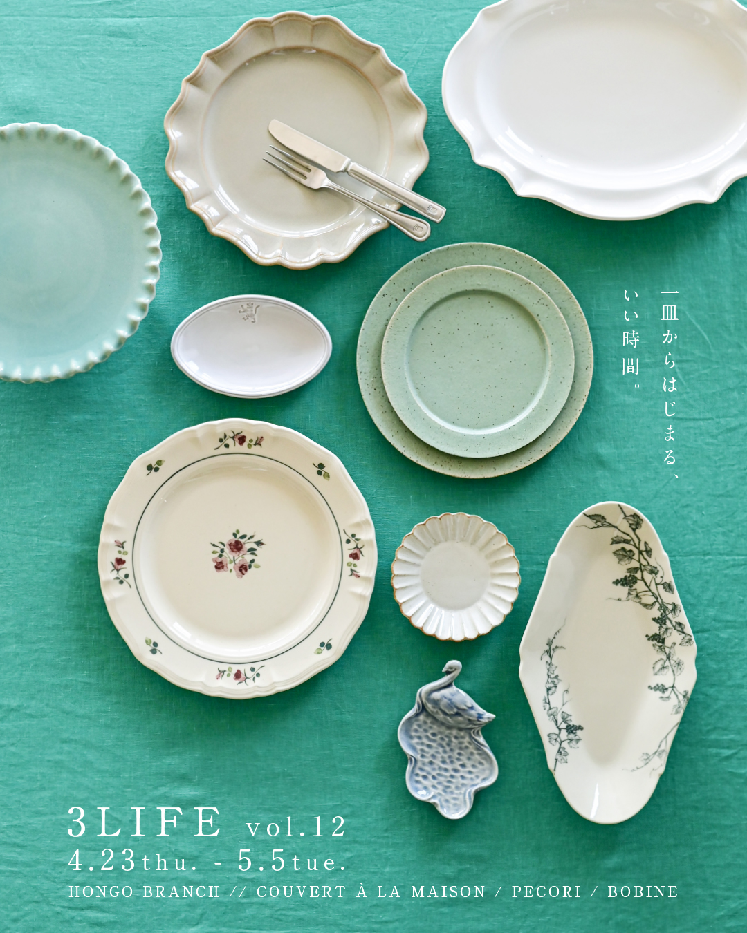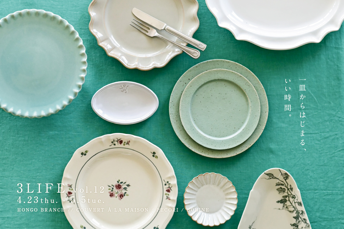 今年もクーヴェール・ペコリ・ボビン合同の企画展「3LIFE」を開催いたします。