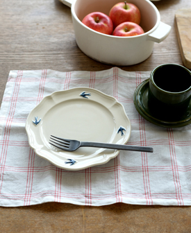エプロンやギャルソンも清潔感がって、いつもの食卓やキッチンが一段と明るくなるようなアイテムです。