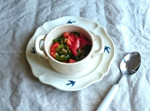 プレートを敷き皿にしてスープカップやグラタン皿を置いても可愛らしいです!