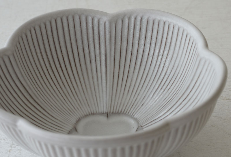 盛り付ける部分にも連動させて、花形の釉溜まりを作りました。