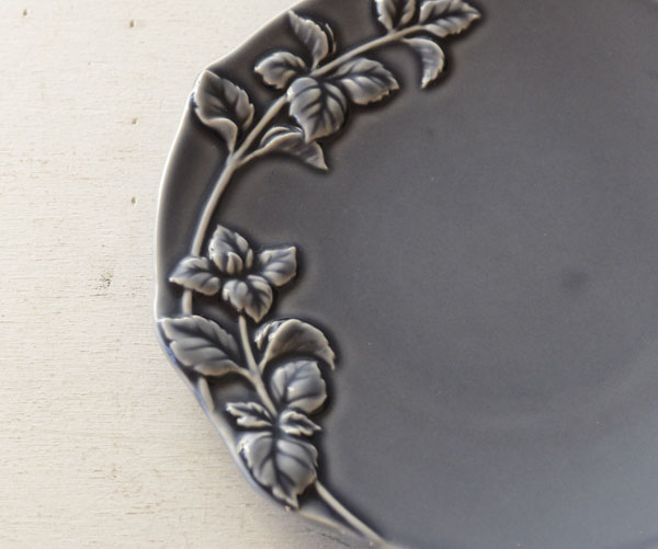 葉脈や凹んだ部分の装飾に釉薬が溜まり、