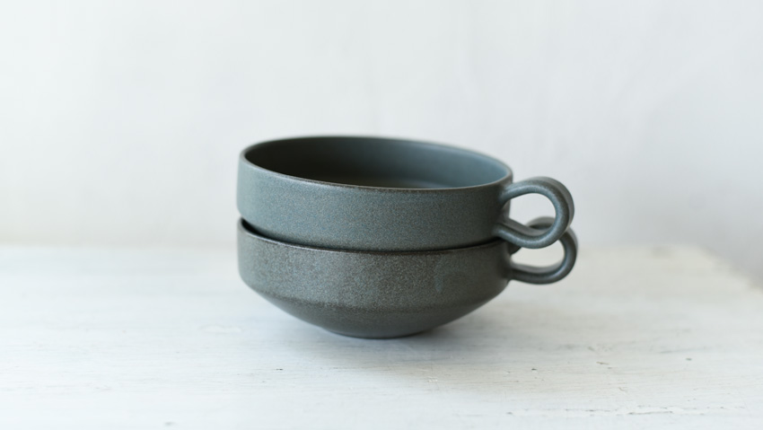 黒土をベースに、渋いマット釉をかけた風合いが魅力的な手付きボウル。