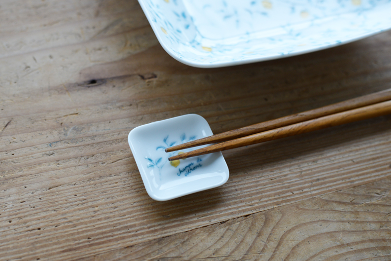 小さな箸置きはレモン一枝をワンポイントに入れて可愛らしく仕上げました。