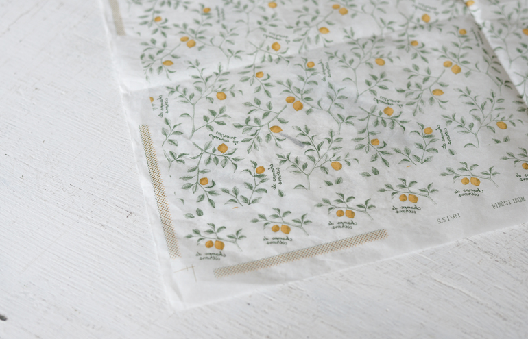 実の部分にだけさし色をすることで、レモンが際立ち、柄全体のアクセントになっています。