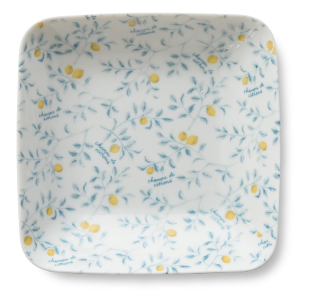 磁器の中でも特に白い、白磁素材を素地に選んだことで、レモン柄がより鮮明に浮かび上がります。