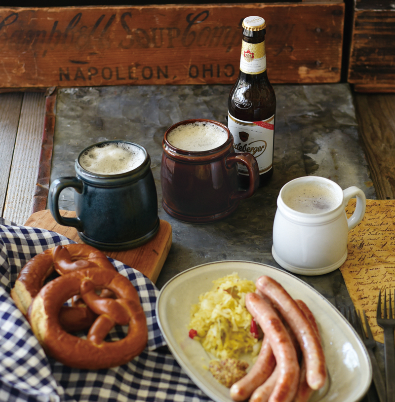 クルークとビール、おつまみにソーセージとプレッツェルを用意すれば、お家がまるでビアホールのように。