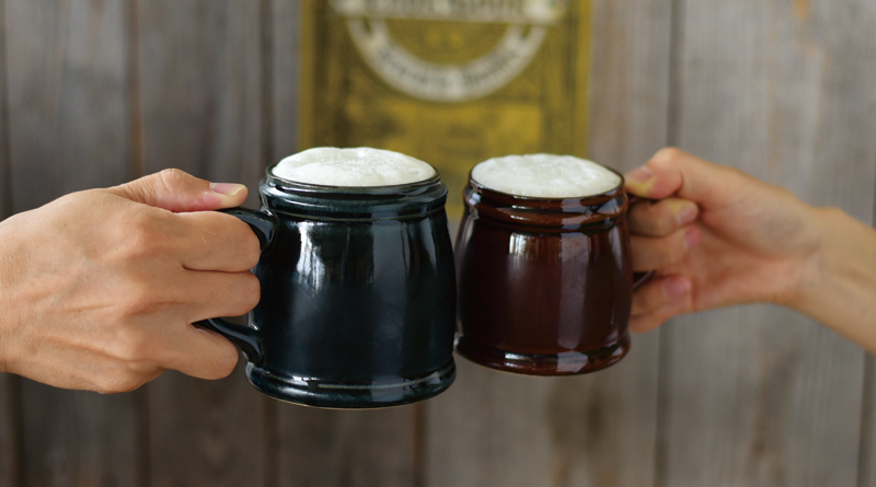 「アンティークのような陶器のビアジョッキ」