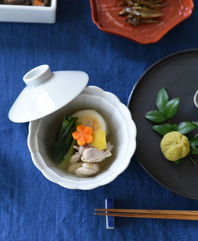 吸い物、お雑煮、煮物、ぜんざいなど品良く使える色展開です。