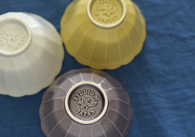 晴れた冬の朝のような美しさの青白磁、ぱっと明るく映えるからし、個性的で上品な紫。