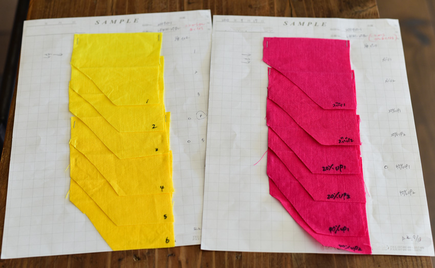 ピンクは南米の植物フクシャを目指しました。ほんの少し赤紫色に振った魅惑的な色みの下から2番目で決定しました。