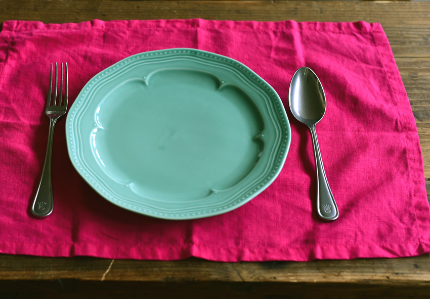 コースター、ランチョン、クロス類はキッチンやテーブルの差し色として登場させれば、
