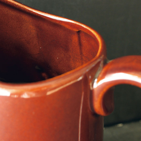 圧力成型で土を型に流し込む口の部分を鋳込み口(いこみぐち)といいます。液状の土を流し込んで成型する器には製造工程上、必ずへこみや筋のような溝となって残ります。
