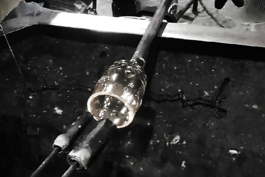 息を吹き込みながら成形することで生まれる、わずかなゆらぎや気泡、厚みの違い。