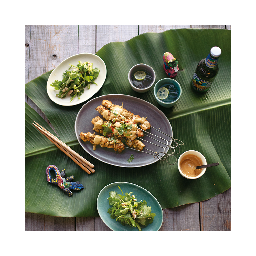 290オーバルプレートに串焼き、230オーバルボウルにはナシゴレンを盛り付けるなど、インドネシアの料理にもぴったりな雰囲気です。
