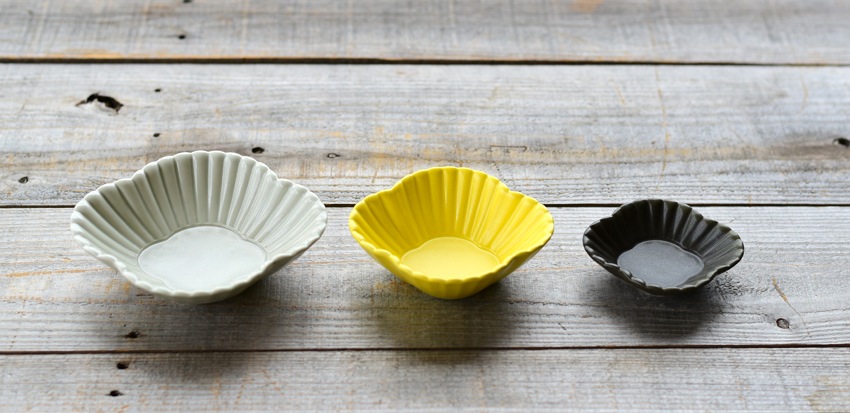 「菊割木瓜」シリーズは、副菜などを盛り付けるのにぴったりな小鉢・豆皿のシリーズ。
