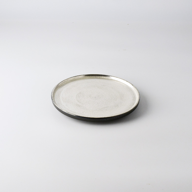 イタリア語で円や輪という意味のチェルキオは、食事から人の輪が生まれるという意味が込められています。自由な盛付けの出来るこのフラットな盛り面と質感は、料理を作る人の感性を刺激してくれます。乳白釉を使用した白と鉄分を多く含む虹彩釉を使用した黒の定番の2色は、品がありながらシャープな印象。そして新しく加わったグレイッシュホワイト、アイスブルー、ダークグレー、銀彩の4色はモダンな印象。5寸皿は、前菜の一品皿や取皿に最適なサイズです。
