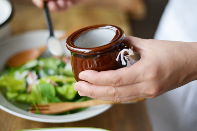 シーザーサラダのドレッシングは多めに作って保存容器にストック。