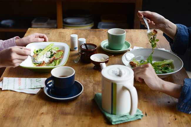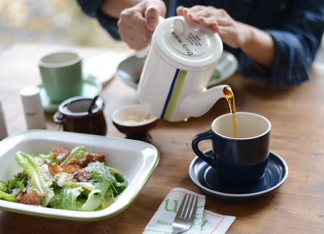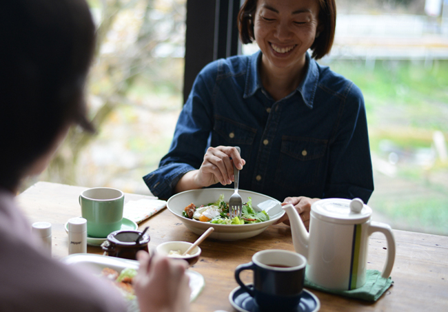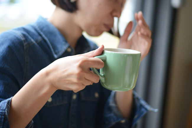 アースカラーのマグカップが、自然の恵みを頂く今日のメニューにぴったり。