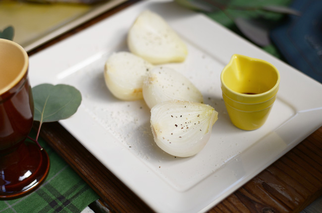 オーブンで焼いただけの玉ねぎはジューシーでやわらかい。