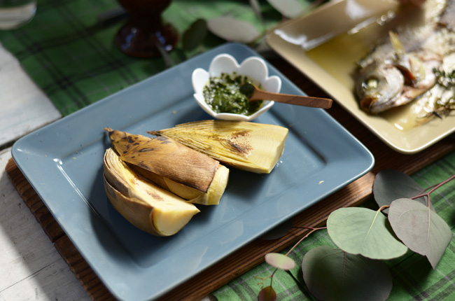 新鮮なたけのこを面倒な下処理なしで皮ごとオーブンに入れるだけ。