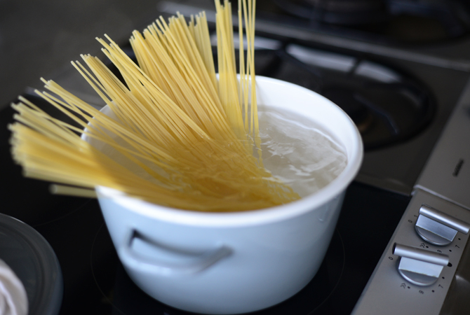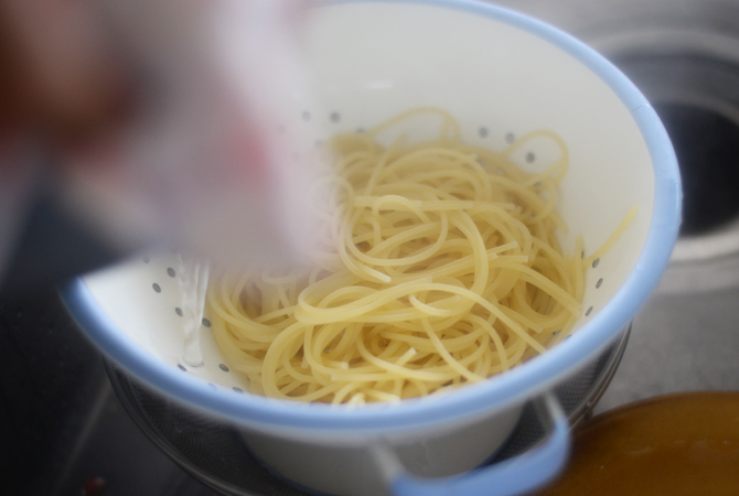 パスタを茹でる時にしっかりと塩味をつけるのが大事。