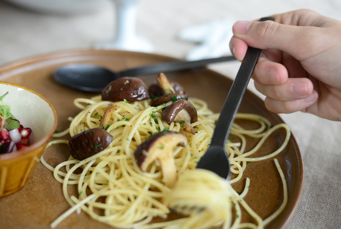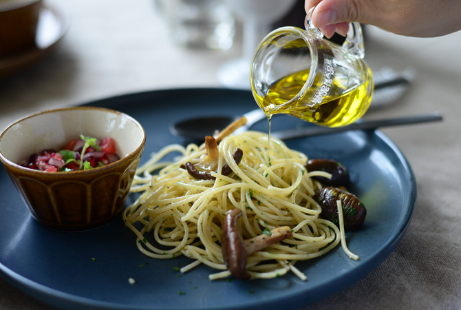 香りのいい原木栽培しいたけのシンプルなパスタ。