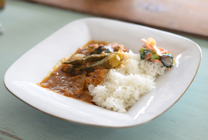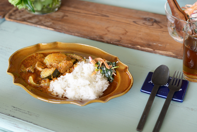 大皿は余白に引き立てられてカレーが豪華に見える。