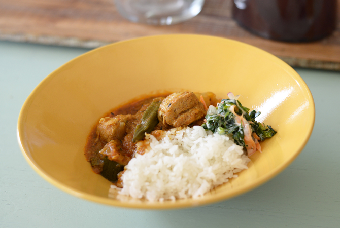 食欲を刺激するターメリック色のボールはカレーがよく似合う。