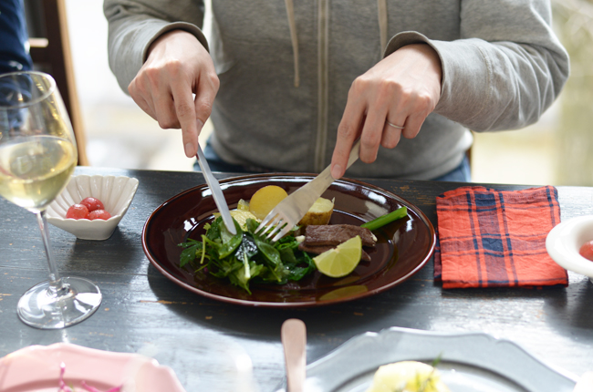 オーバルの形はバランス良く盛りつけられるから、パーティーの取皿にもおすすめ。