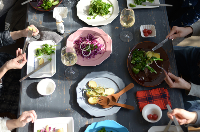 野菜の持つ力強い色に、色とりどりのプレートを合わせてカラフルなテーブルにしよう。