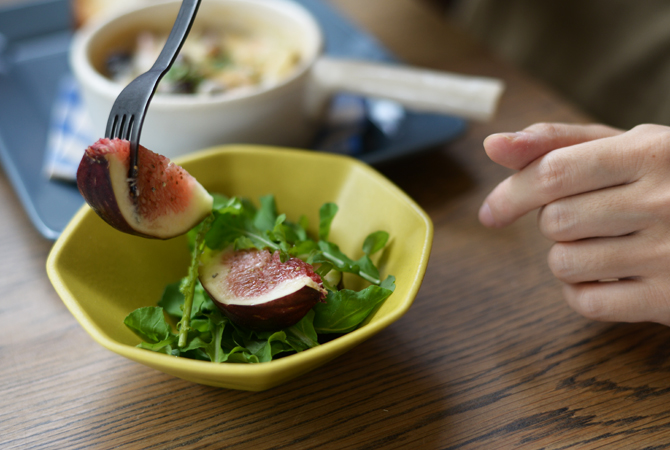 瑞々しいいちじくの甘みとルッコラの苦みのバランスがおいしいサラダ。