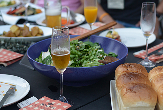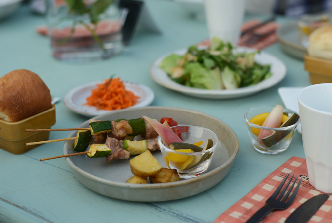 暑い日にぴったりなスパイシーな串焼きやスペアリブ、瑞々しい旬の夏野菜の料理が並ぶ。