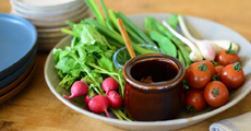 グリルしたパプリカやナス、オクラをコクのあるバーニャカウダソースで頂く。