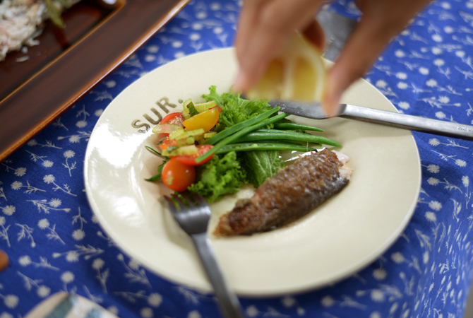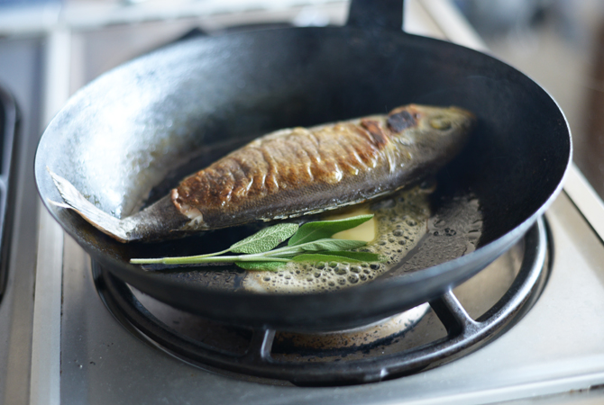 初夏が旬のイサキを一匹まるごとムニエルにして味わう。