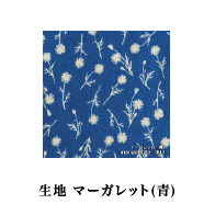 鮮やかなブルーのマーガレット柄のテーブルクロスが爽やか。