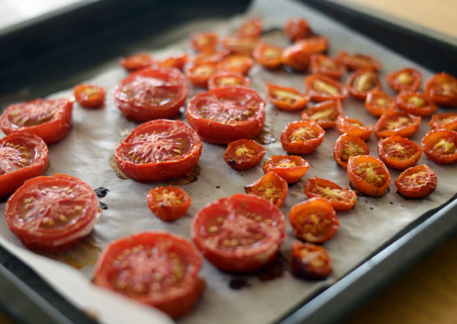 オーブンで焼いたトマトは、甘みがぐーんとアップ。コンポートにしよう。
