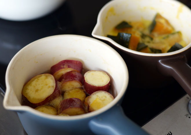 さつまいものマーマレード煮と、かぼちゃのミルク煮も美味しく出来た!