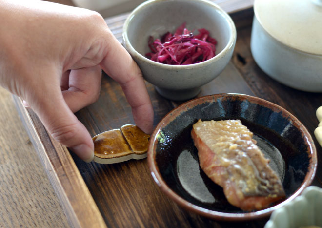 紫キャベツのマリネは色がとってもキレイだから落ち着いた色の小鉢と合わせよう。