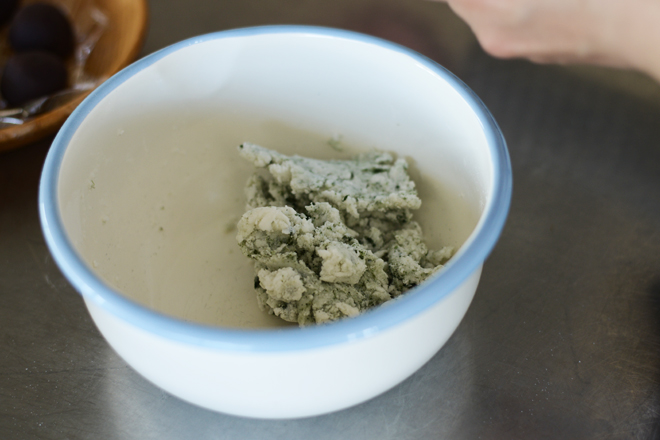 2色にしたいから、こちらはヨモギを混ぜた方。