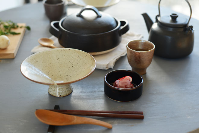 今回は、高台向付やリュウル赤銅を使って大人なコーディネート。