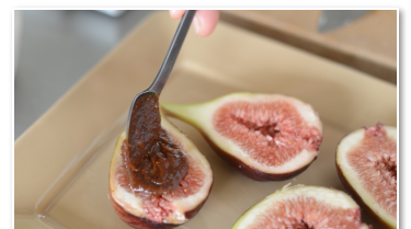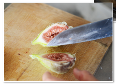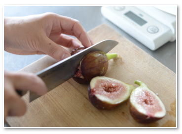 いちじくを縦に半分に切ります。