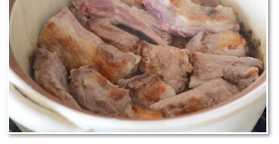 スペアリブの脂身を下にして焼き