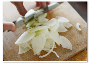 まずは、たまねぎをスライスに、