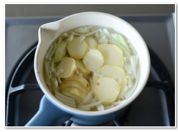 さつまいも、たまねぎ、昆布と水を鍋に入れ、