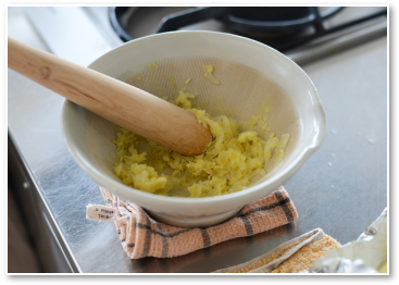 すり鉢で潰す。