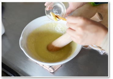 バターを入れることで分離を防ぎ、