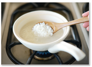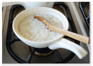 お米からおかゆを炊きます。