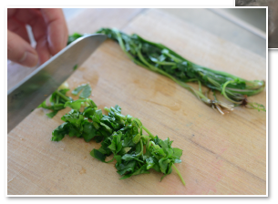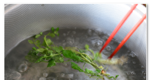 熱湯にくぐらせてから細かく切ります。