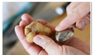 生姜は皮をスプーンでこそげ取り、