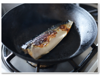 塩鯖はフライパンで